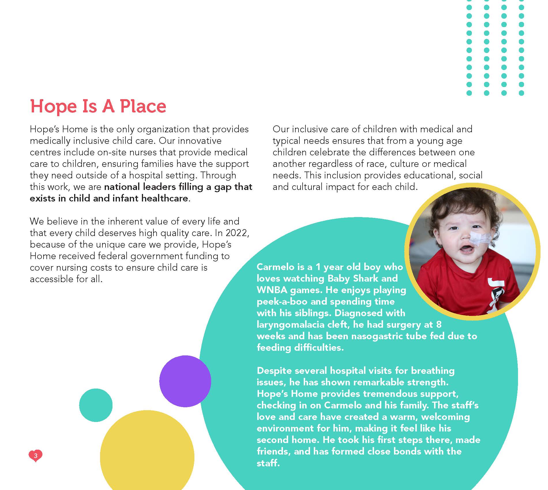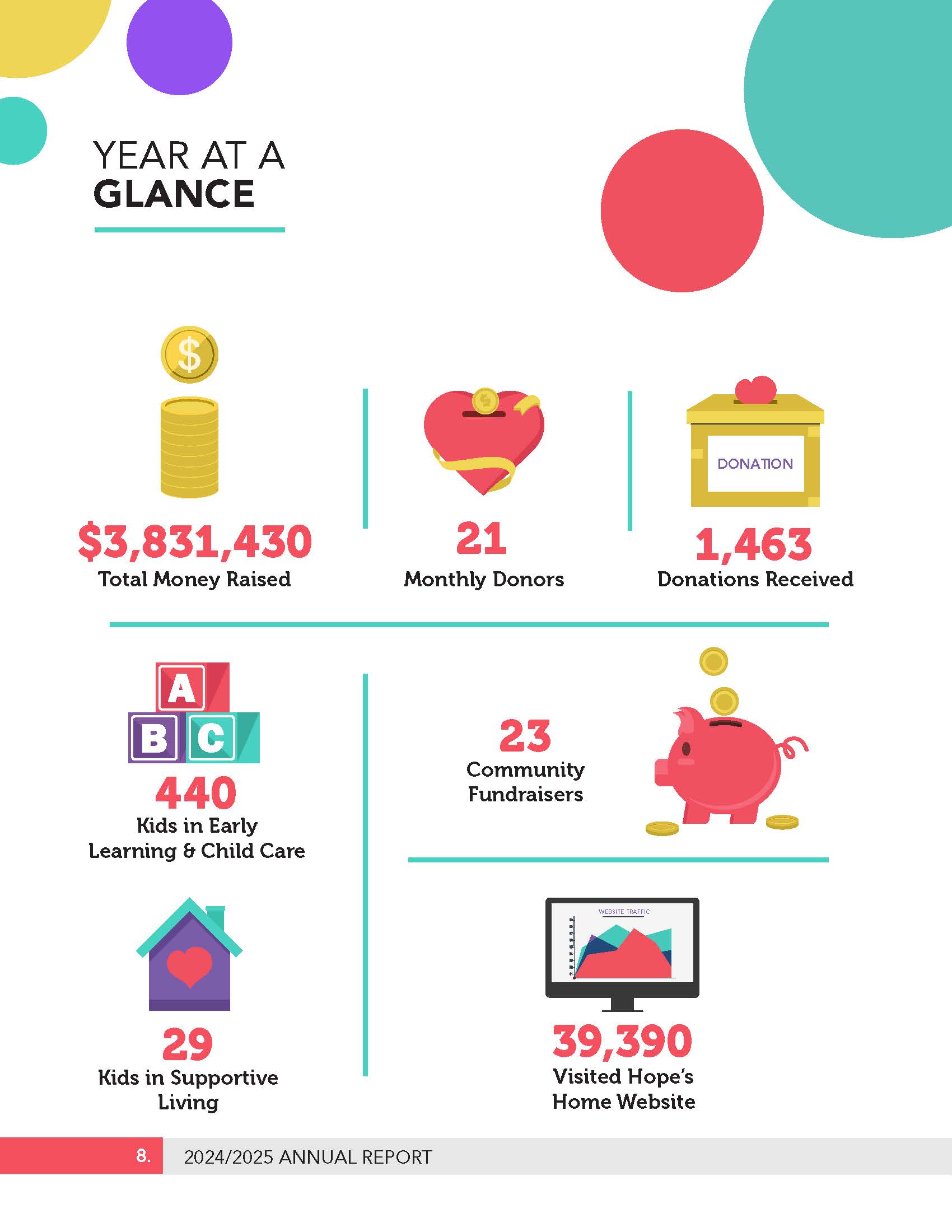 Produced Hope’s Home’s 2024–2025 Annual Report, transforming provided data and stories into a clear, visually engaging document that reflected the organization’s impact and achievements.