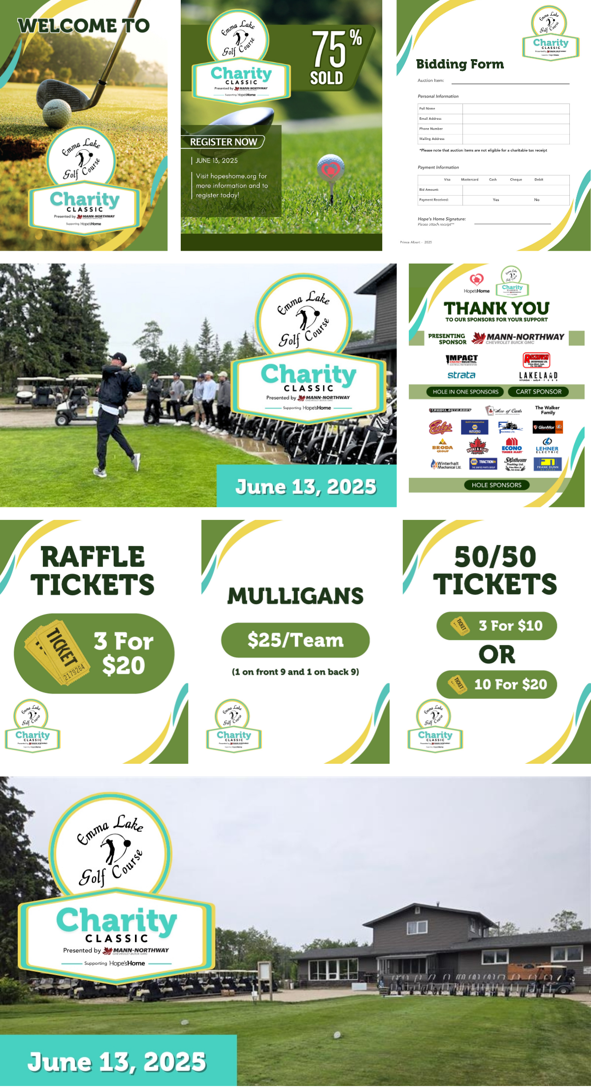 Developed a refreshed visual identity for the 2025 Charity Classic, including a new logo and accompanying event materials. Deliverables ranged from social media graphics and website banners to printed collateral. While distinct from the core Hope’s Home brand, the updated design provided a modernized look that built on previous years’ materials, giving the event a polished, cohesive presence.